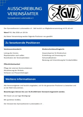 Ausschreibung Vereinsämter